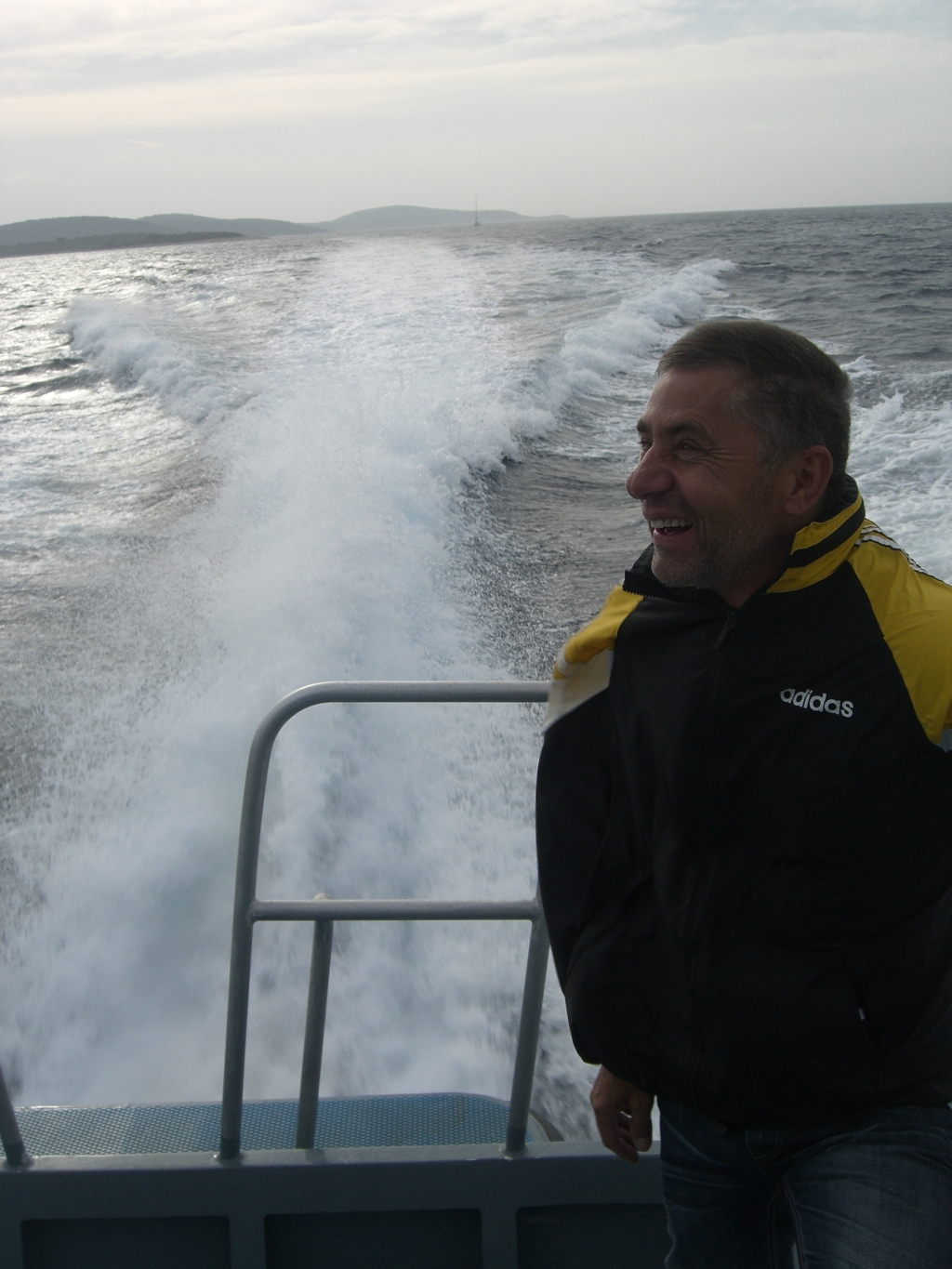 Die Formalitäten gestalteten sich etwas umständlich, da wir die Europäische Union verließen, mussten wir ausklarieren. Leider musste auch noch ein Dokument vom Hafenkapitän zur Zollbehörde transportiert werden. Da sich das Wort "Hauspost" offensichtlich nicht ins Griechische übersetzen lässt, kostete uns der Spaß 40€ für das Taxi und eine Stunde für das Umherfahren und Suchen des zuständigen Zollbeamten. Der nahm das Doklument entgegen und legte es auf Halde, da liegt es wahrscheinlich immer noch... Gegen 11:00 Uhr war dann endlich mit einer Stunde Verspätung der Start, der erste Schlag ging über ca. 220 Seemeilen von der Marina Guvia auf Korfu nach Cavtat in Kroatien. Größere Kartenansicht Die Überfahrt dauerte ca. 35 Stunden bei Wind und Wellen auf der Nase. Die Hälfte der Crew spendete die Weißwürste und den guten Händlmaier Senf dem Meeresgott Poseidon. Caftat zeigte sich von seiner freundlichsten Seite, obwohl wir nach 220 Seemeilen 10 Minuten vor 20 Uhr angekommen waren, weigerte sich der Zoll, uns noch einklarieren zu lassen. Wir mussten unter gelber Flagge in der Bucht ankern und durften das Boot nicht verlassen. Dem zuständigen Zollbeamten sei hier nochmals unser herzlichster Dank für die großzügige Auslegung seiner Arbeitszeit (eigentlich bis 20 Uhr) ausgesprochen. Unser Nächstes Ziel war Korcula. Mit 50 Seemeilen und tollem Wind ein wunderbarer Trip. Das Boot lief stellenweise über 10 Knoten (in der Spitze über 11 Knoten). Größere Kartenansicht In der Marina von Korcula bekamen wir keinen Liegeplatz mehr und mussten in der neben dem Ort Korcula liegenden Bucht vor Anker gehen. Das war aber kein Problem und mit 22€ Gebühr deutlich billiger als in der Marina. Mit dem Beiboot anlegen und 5 Minuten zu Fuß nach Korcula gehen. Sehr schöner Ort mit vielen guten Lokalen. Von Korcula ging es nach Hvar in die Marina von St. Klement.